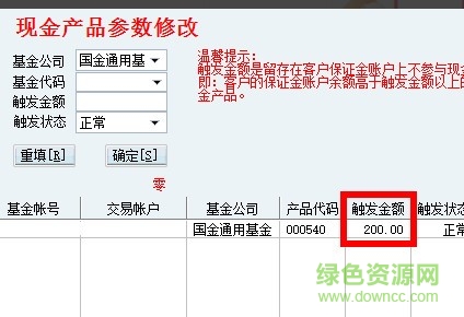 4.選擇基金代碼后,可以顯示出觸發(fā)金額,這個(gè)200就是為什么你總是只有200的可用資金。