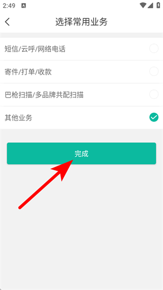 4、選擇常用業(yè)務(wù)后,再點(diǎn)擊完成的按鈕,完成賬號(hào)注冊(cè)的操作。