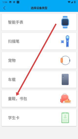 3、在進(jìn)入到現(xiàn)在設(shè)備類型頁面后,可以點(diǎn)擊下方童鞋選項(xiàng),進(jìn)入添加綁定。