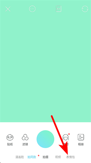2、在拍攝界面中點(diǎn)擊表情包選項(xiàng),切換到表情包制作模式。