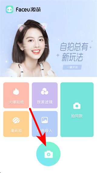 1、打開(kāi)Faceu激萌APP,點(diǎn)擊底部相機(jī)圖標(biāo),進(jìn)入拍攝界面。