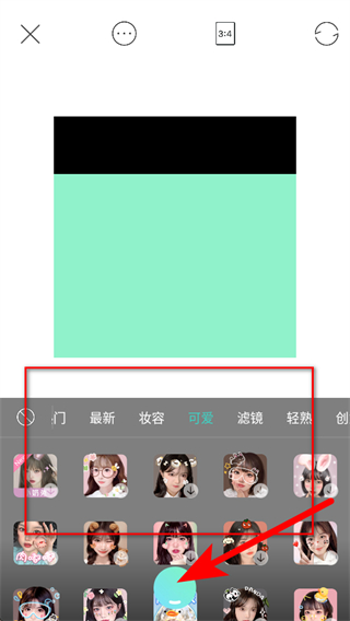 3、點(diǎn)擊貼紙選項(xiàng),可在熱門(mén)、最新、妝容、可愛(ài)等分類(lèi)中選擇喜歡的貼紙。