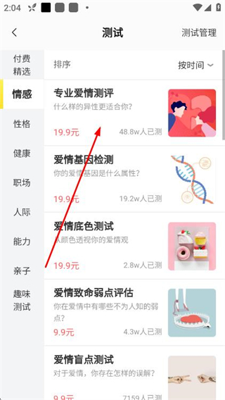 2、在情感測(cè)試列表中,選擇目標(biāo)測(cè)試進(jìn)入詳情頁(yè)。