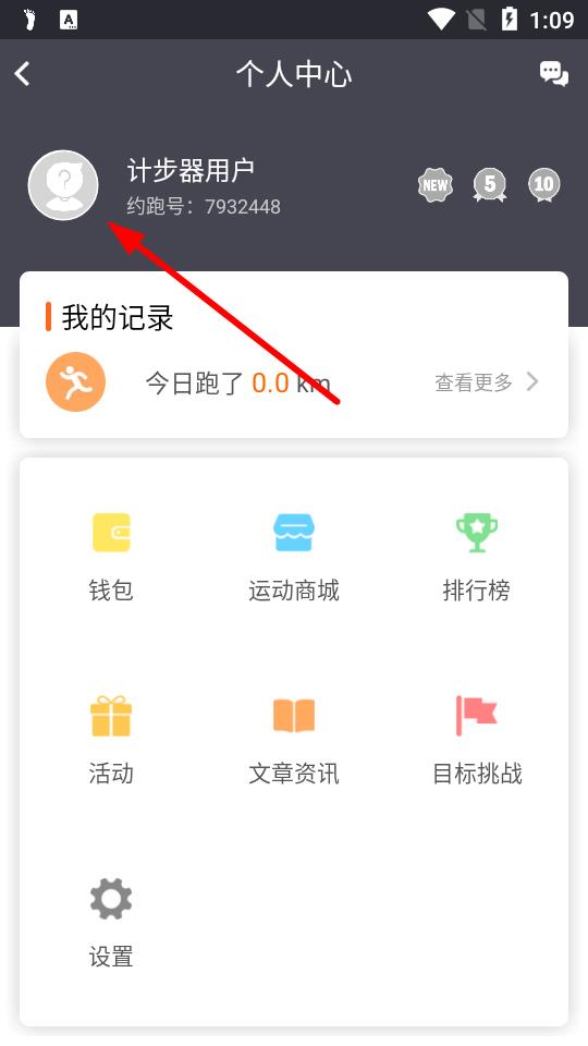 1、打開嘀嗒計(jì)步器app,點(diǎn)擊界面左上角的人像圖標(biāo),進(jìn)入個(gè)人中心頁面。