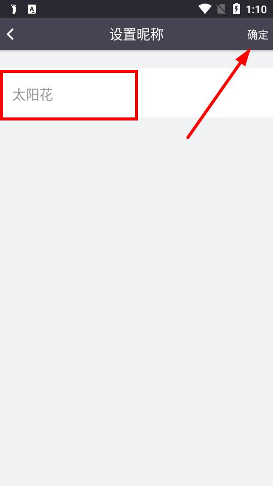 4、在設(shè)置昵稱頁面的輸入框中,輸入想要修改的名字,輸入完成后點(diǎn)擊右上角的確定,即可成功修改名字。