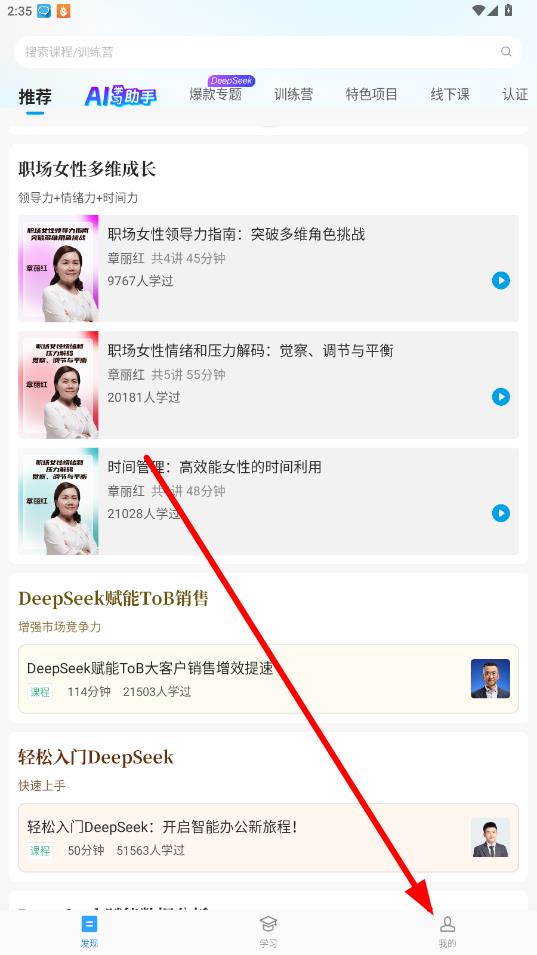 1、打開(kāi)量見(jiàn)云課堂APP,點(diǎn)擊底部導(dǎo)航欄最右側(cè)的我的,進(jìn)入個(gè)人頁(yè)面。