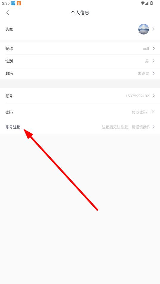 3、在賬號(hào)設(shè)置界面里,找到并點(diǎn)擊賬號(hào)注銷選項(xiàng)。