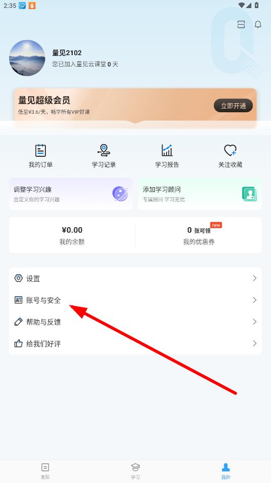 2、在個(gè)人頁(yè)面中,點(diǎn)擊賬號(hào)與安全選項(xiàng),進(jìn)入賬號(hào)相關(guān)設(shè)置界面。