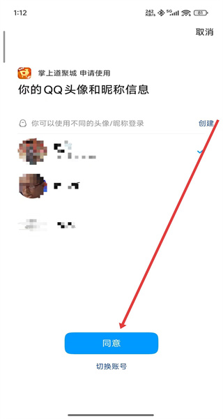 3、在QQ授權(quán)頁面點(diǎn)擊“同意”,完成QQ授權(quán)登錄,進(jìn)入掌上道聚城APP主界面。