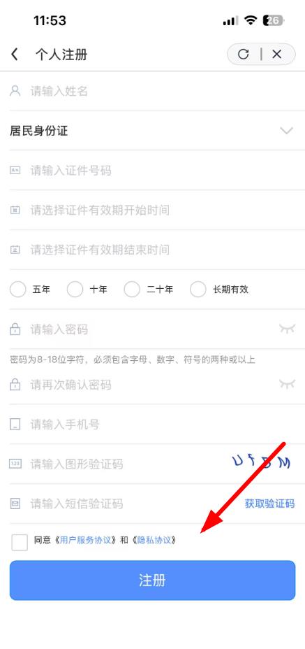 1、進入后新用戶點擊注冊,填寫準確身份證信息、密碼注冊,就能使用注冊的賬號和密碼登錄,享受各類政務服務和生活服務。