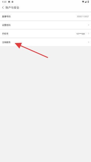 3、在賬號與安全頁面中,點擊注銷服務的按鈕。