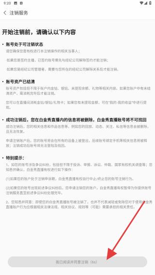 4、仔細閱讀注銷提醒后,點擊我已閱讀并同意注銷,即可完成小米直播賬號的注銷。