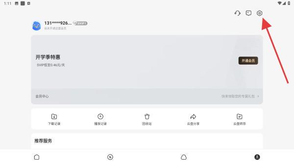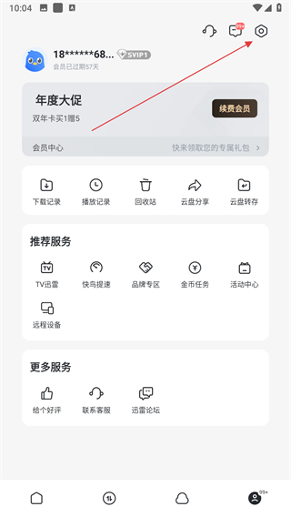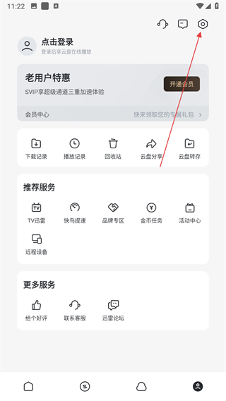 1、打開(kāi)迅雷APP,點(diǎn)擊設(shè)置圖標(biāo)。