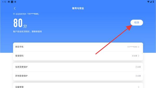 4、進(jìn)入后,目前評(píng)分為80,可點(diǎn)擊右側(cè)檢測(cè)的按鈕再進(jìn)行一次檢測(cè)。