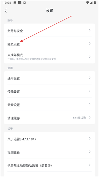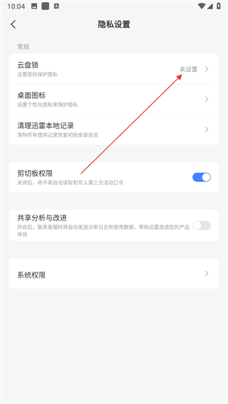 3、在隱私設(shè)置頁(yè)面,點(diǎn)擊云盤(pán)鎖選項(xiàng)。