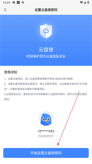 5、在設(shè)置云盤(pán)鎖密碼頁(yè)面,點(diǎn)擊開(kāi)始設(shè)置。