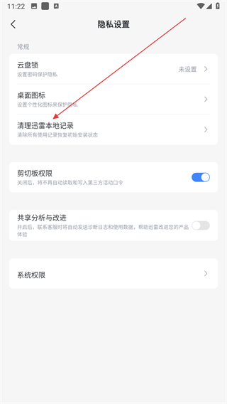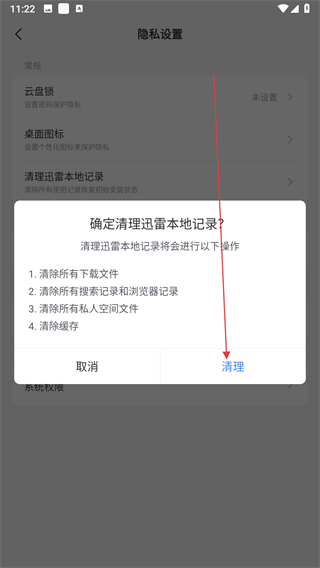 4、點(diǎn)擊清理迅雷本地記錄,彈窗中點(diǎn)擊清理。