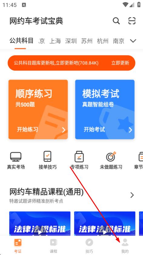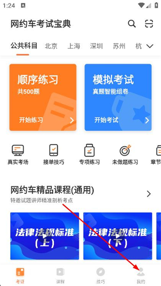 1、打開網(wǎng)約車考試寶典APP,進(jìn)入主界面,點(diǎn)擊底部導(dǎo)航欄中的我的。