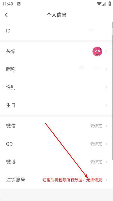 3、在個(gè)人信息頁(yè)面,下滑找到并點(diǎn)擊注銷賬號(hào)選項(xiàng)。