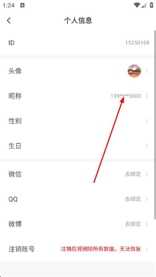2、在我的頁(yè)面中,點(diǎn)擊手機(jī)號(hào)區(qū)域進(jìn)入個(gè)人信息頁(yè)面。