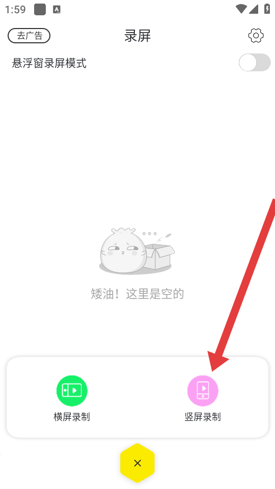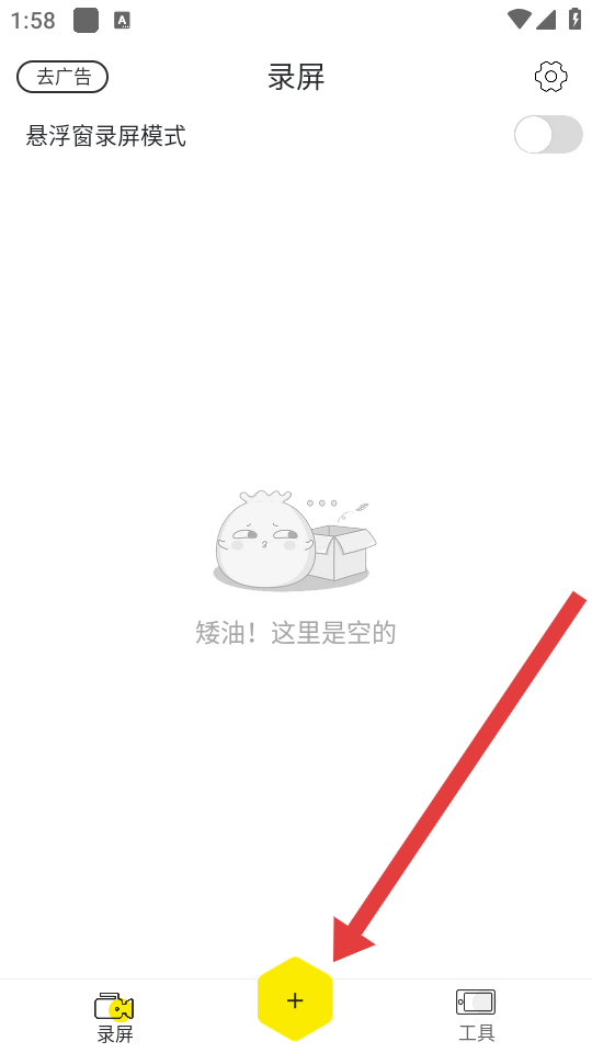 1、在錄屏高手的錄屏頁(yè)面,點(diǎn)擊底部+按鈕,喚起錄制模式選擇彈窗。