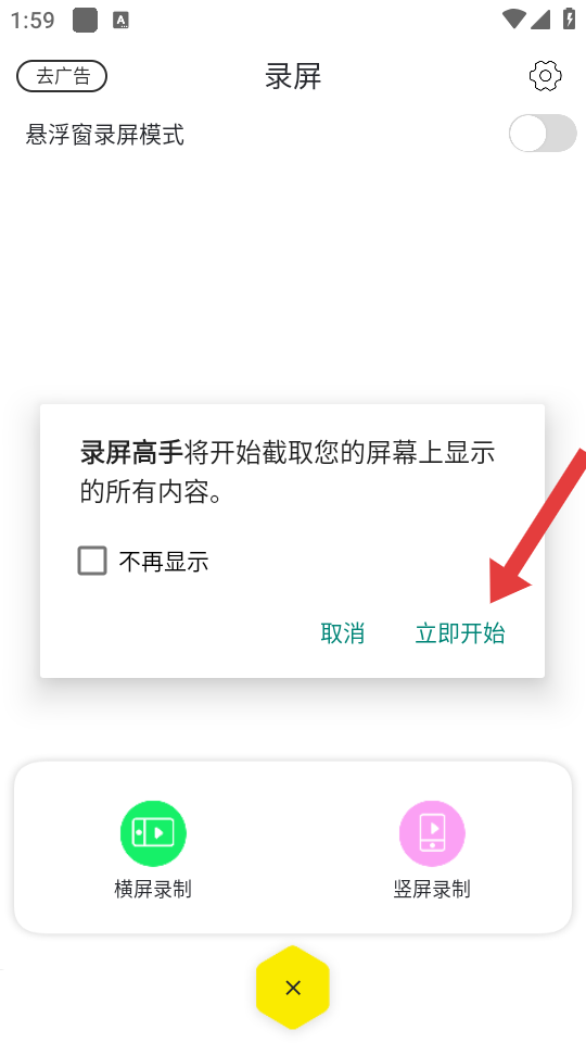 2、在錄制模式選擇彈窗中,點(diǎn)擊豎屏錄制選項(xiàng),觸發(fā)權(quán)限授權(quán)流程。
