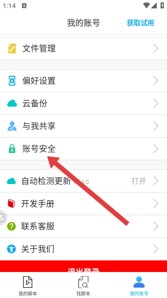 1、進(jìn)入我的賬號頁面后,點擊賬號安全選項,進(jìn)入賬號安全設(shè)置界面。