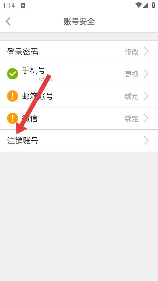 2、在賬號安全界面,點擊注銷賬號選項,彈出注銷賬號提示框。