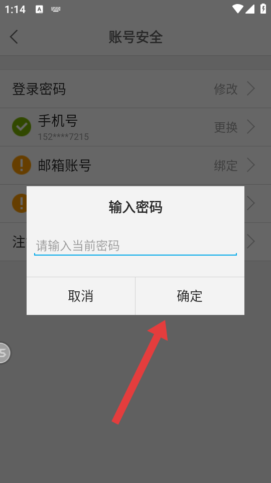 4、在密碼驗證界面,輸入當(dāng)前賬號的密碼,點擊確定按鈕完成賬號注銷。
