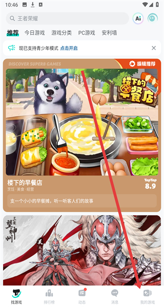 1、可以點(diǎn)擊首頁(yè)下我的游戲按鈕,進(jìn)入主頁(yè)查看相關(guān)內(nèi)容。