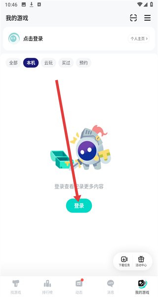2、在進(jìn)入到我的游戲主頁(yè)中,可以點(diǎn)擊登錄按鈕,在完成登錄后即可查看。