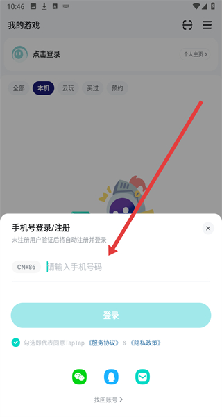 3、點(diǎn)擊輸入框填寫手機(jī)號(hào)后,點(diǎn)擊登錄按鈕以獲取驗(yàn)證碼進(jìn)行登錄。