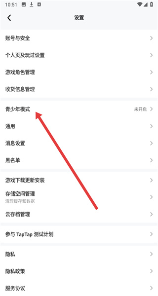 3、設(shè)置頁(yè)面點(diǎn)擊“青少年模式”,進(jìn)入青少年模式設(shè)置頁(yè)面。