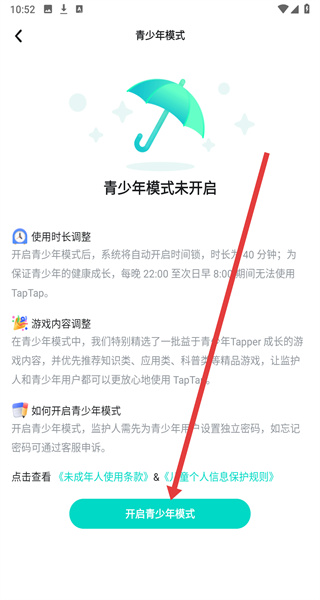 4、在青少年模式頁(yè)面點(diǎn)擊“開啟青少年模式”,按照提示設(shè)置密碼,完成青少年模式開啟。