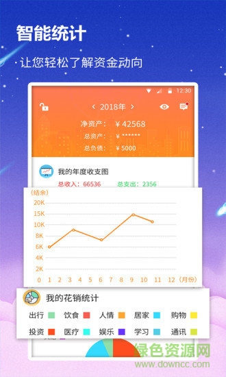 消費(fèi)圖形化:有折線圖、餅圖等簡(jiǎn)潔圖表,透過(guò)趨勢(shì)圖和餅圖,讓你對(duì)你的花銷直觀分析!
