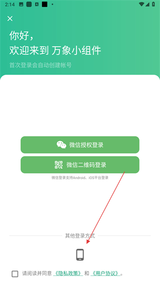3、在登錄選擇頁面,找到其他登錄方式對應(yīng)的手機(jī)圖標(biāo),點(diǎn)擊切換至手機(jī)號登錄界面。
