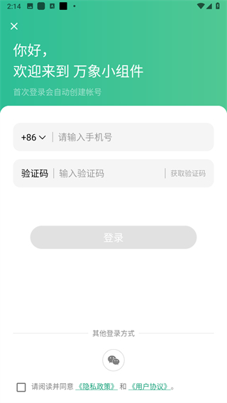 4、在手機(jī)號登錄界面,依次輸入手機(jī)號、獲取并填寫驗(yàn)證碼,勾選協(xié)議后點(diǎn)擊登錄按鈕。