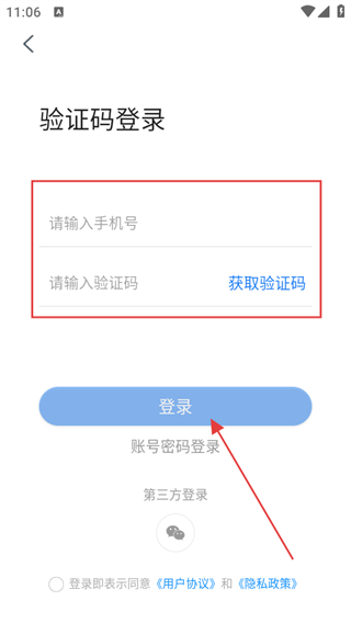 3、輸入手機(jī)號(hào)、驗(yàn)證碼,點(diǎn)擊登錄,自動(dòng)為新手機(jī)號(hào)注冊(cè)賬號(hào)。