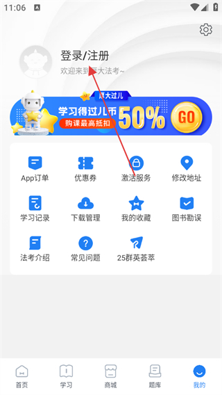 1、打開厚大法考APP,點(diǎn)擊底部導(dǎo)航欄中的我的選項(xiàng)。