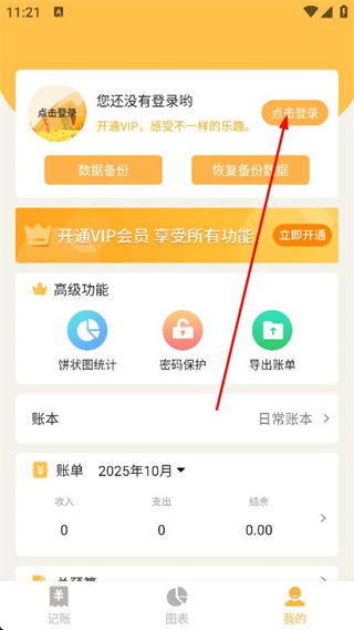 2、在我的頁面中,找到并點擊上方的點擊登錄按鈕。