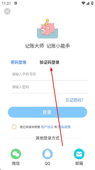 3、進入登錄頁面后,找到并點擊上方的驗證碼登錄。