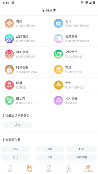 3、書庫(kù)中還有詳細(xì)的作品分類,可以根據(jù)自己的喜好選擇不同的作品觀看和體驗(yàn);