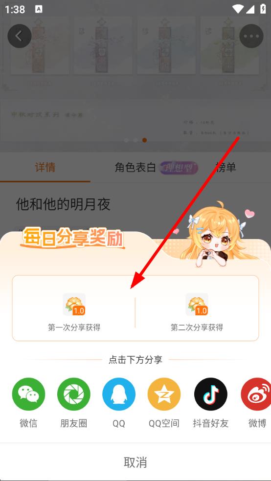 3、在分享界面選擇分享渠道,按提示完成分享,依據(jù)每日分享獎(jiǎng)勵(lì)可獲得相應(yīng)野花獎(jiǎng)勵(lì)。
