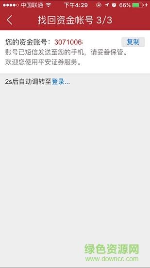 4.驗證后頁面將顯示您的資金帳號