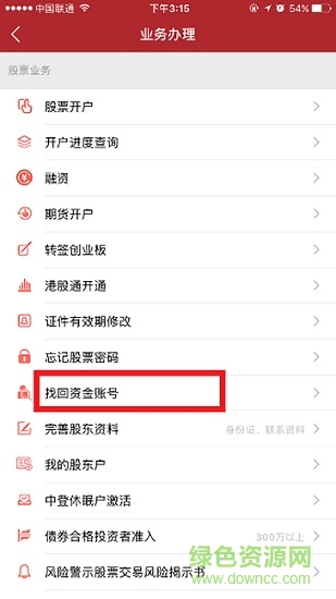 進(jìn)入“業(yè)務(wù)辦理”界面,點擊【找回資金帳戶】