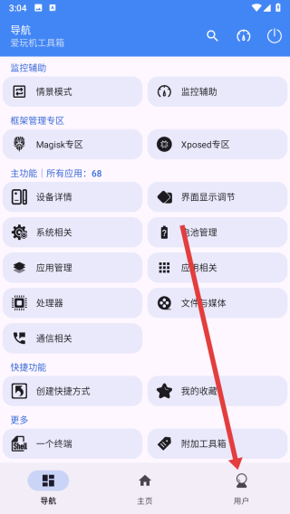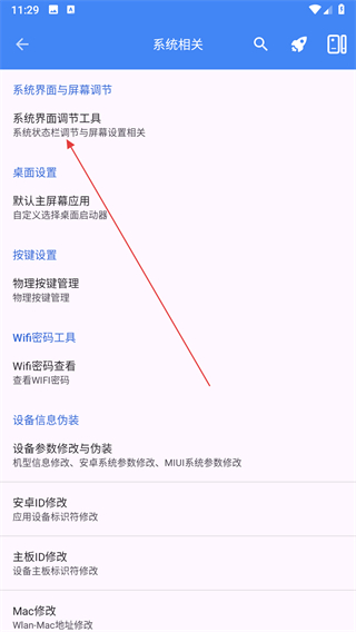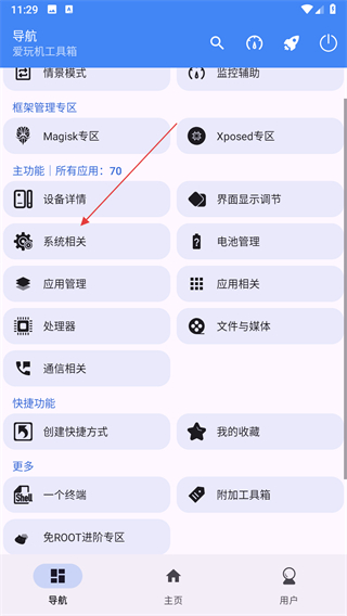 1、打開愛玩機(jī)工具箱APP,在導(dǎo)航頁面點(diǎn)擊系統(tǒng)相關(guān)選項(xiàng)。
