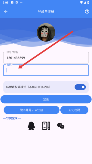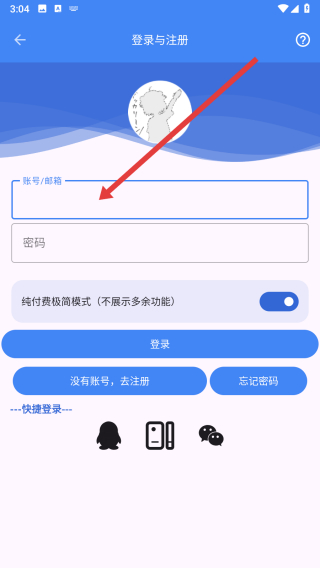 3、在進(jìn)入到登錄頁面中,可以點(diǎn)擊上方輸入框填寫賬號信息。