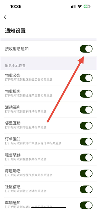 4、在通知設(shè)置頁(yè)面,點(diǎn)擊接收消息通知右側(cè)的開關(guān),將其關(guān)閉即可。