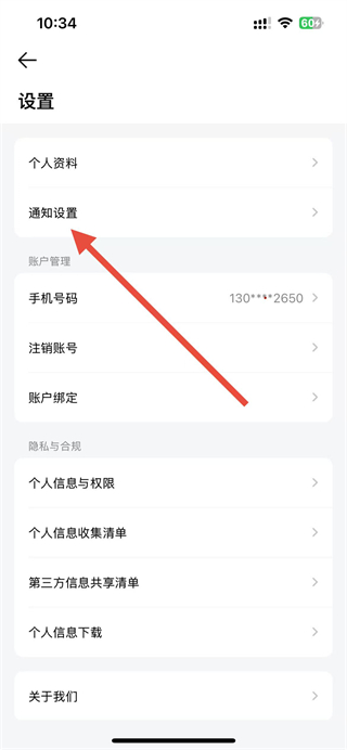 3、進(jìn)入設(shè)置頁(yè)面后,點(diǎn)擊通知設(shè)置選項(xiàng)。