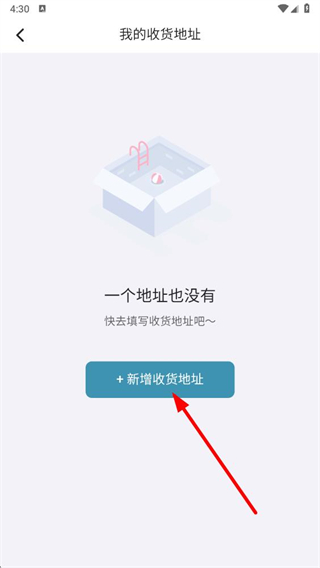 3、在我的收貨地址頁(yè)面,點(diǎn)擊新增收貨地址按鈕,進(jìn)入添加收貨地址的填寫界面。